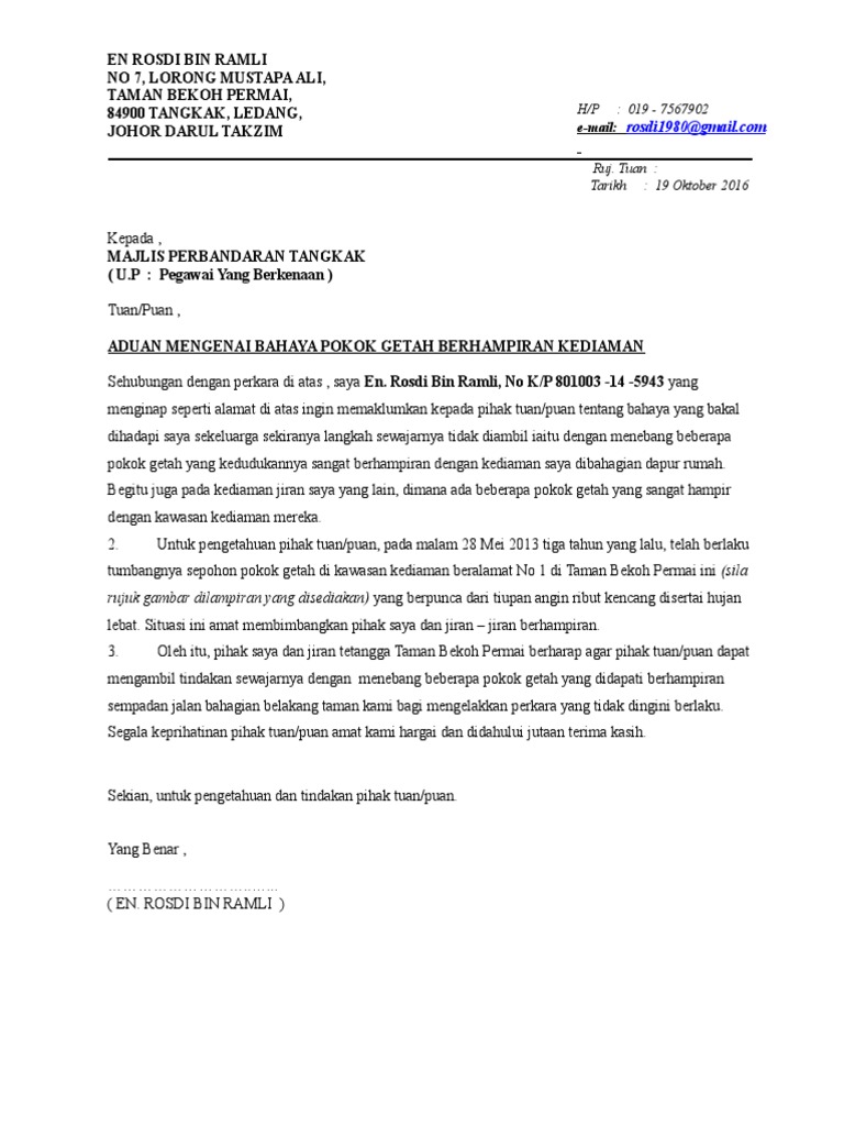 Contoh Surat Aduan Kepada Majlis Perbandaran Baru Letter Website